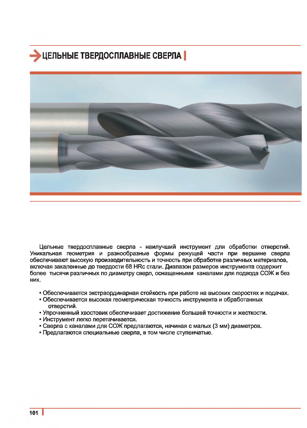 более тысячи различных по диаметру сверл, оснащенными каналами для подвода СОЖ и без