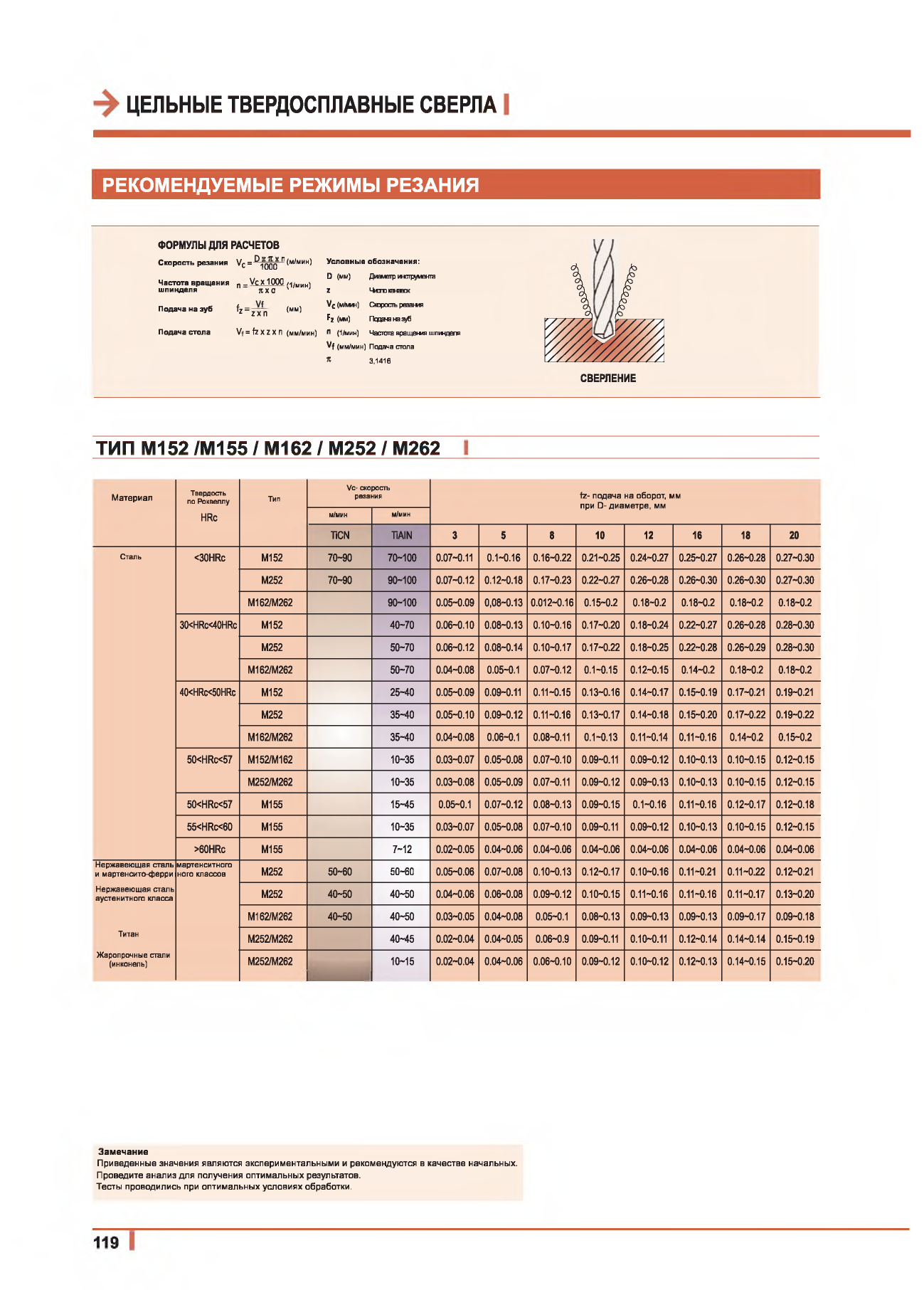 РЕКОМЕНДУЕМЫЕ РЕЖИМЫ РЕЗАНИЯ