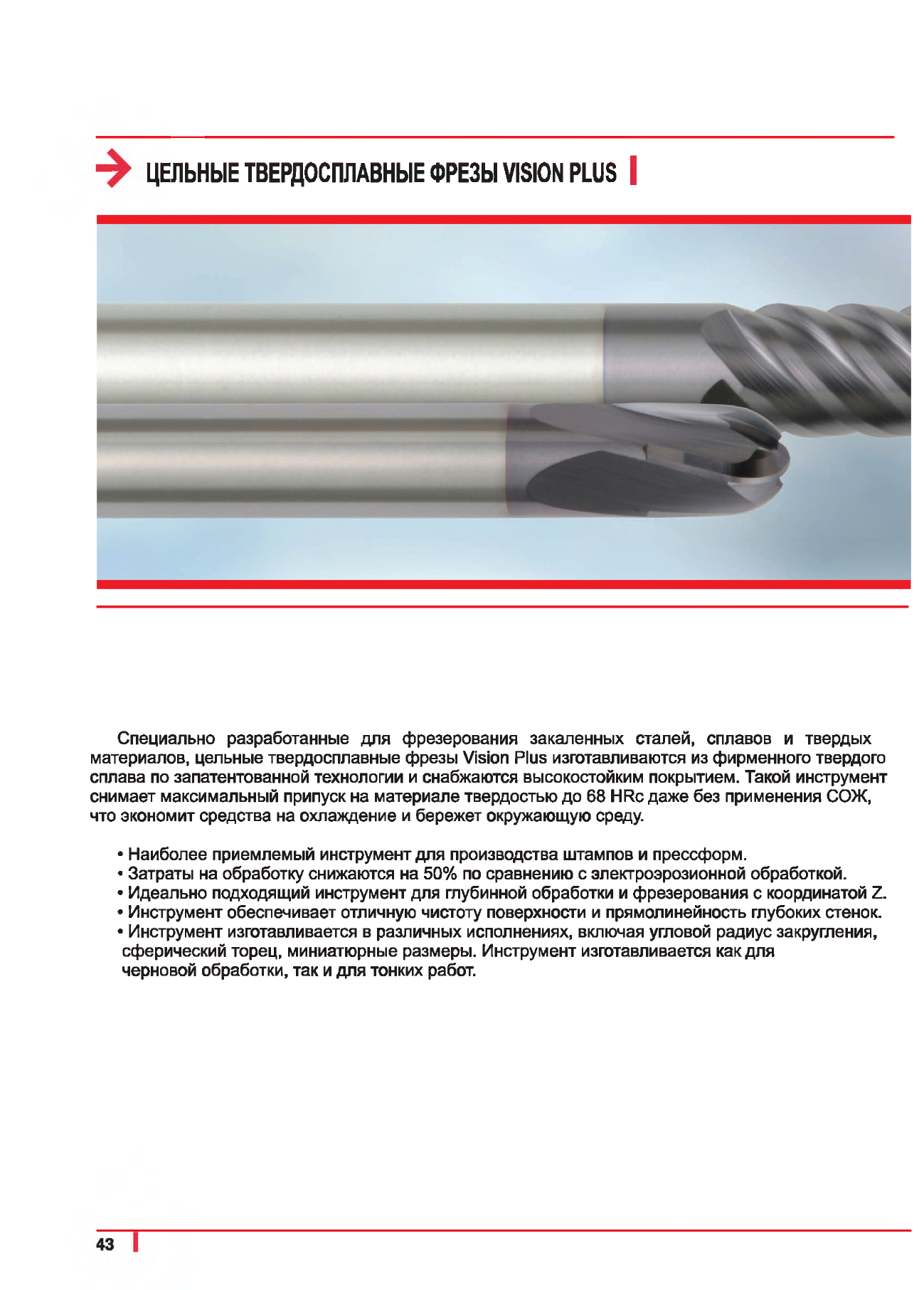 материалов, цельные твердосплавные фрезы Vision Plus изготавливаются из фирменного твердого