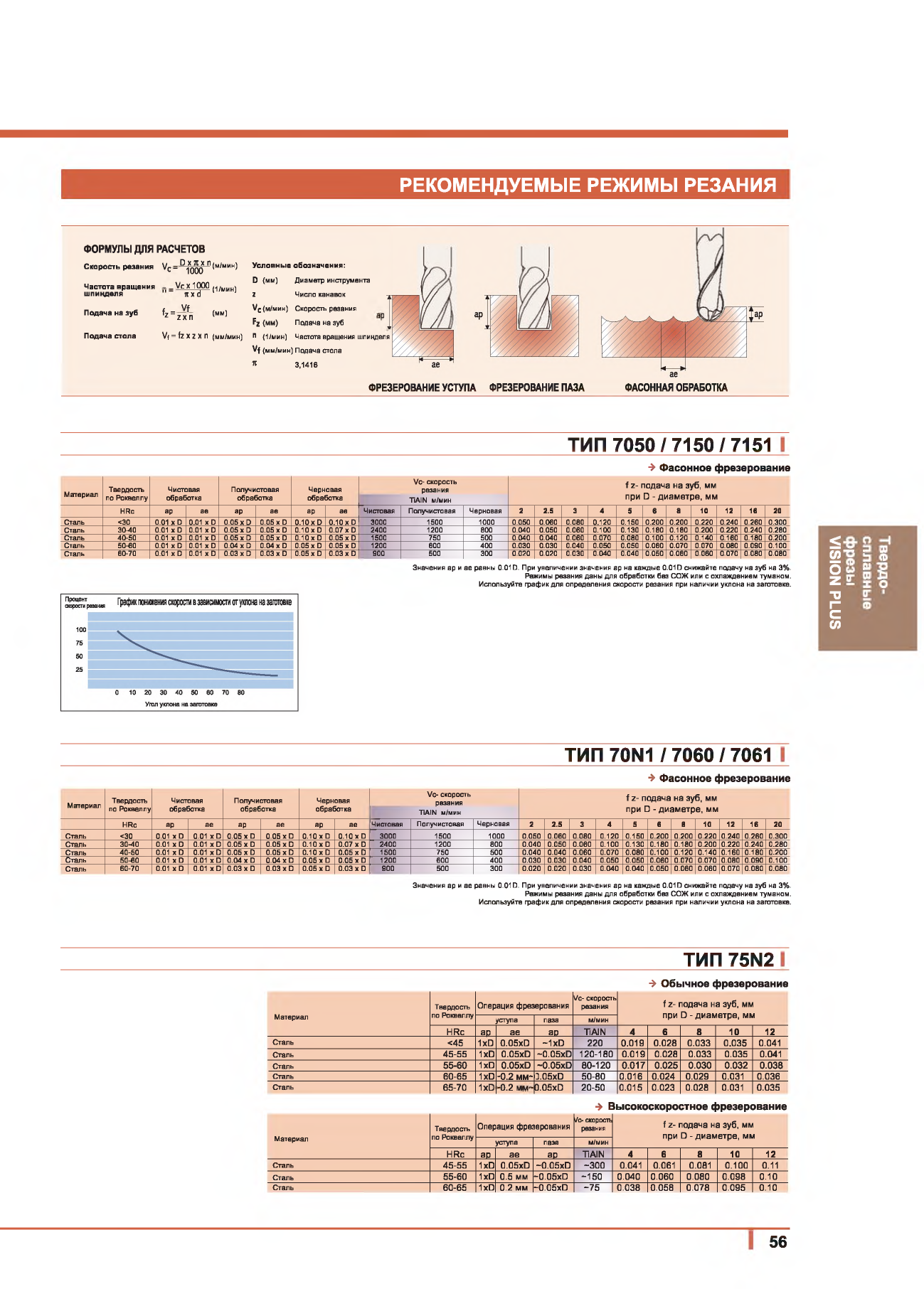 Значения ар и ае равны 0.01 D. При увеличении значения ар на каждые 0.01 D снижайте подачу на зуб на 3%.