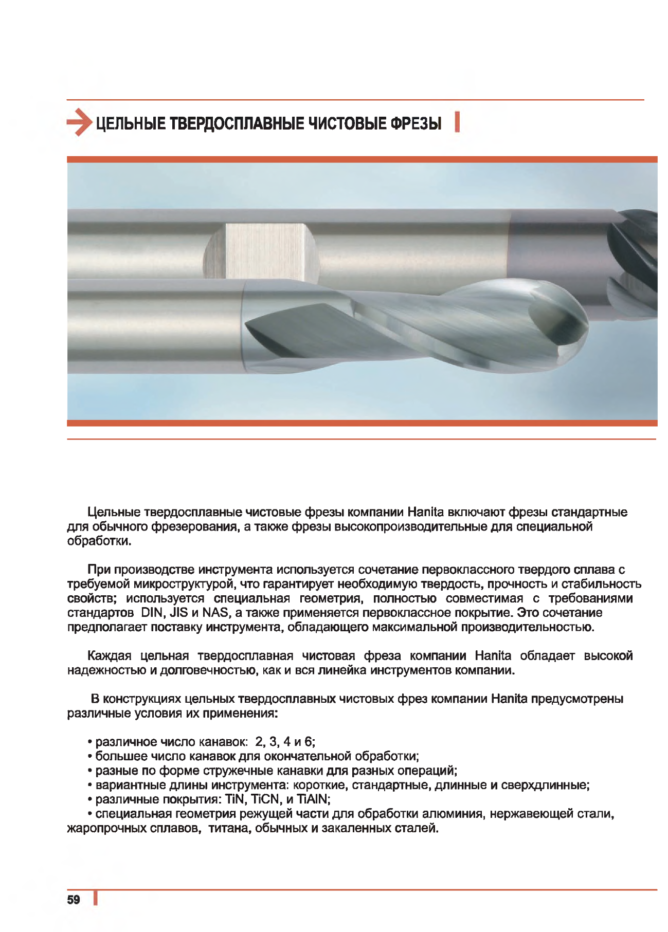 Цельные твердосплавные чистовые фрезы компании Hanita включают фрезы стандартные