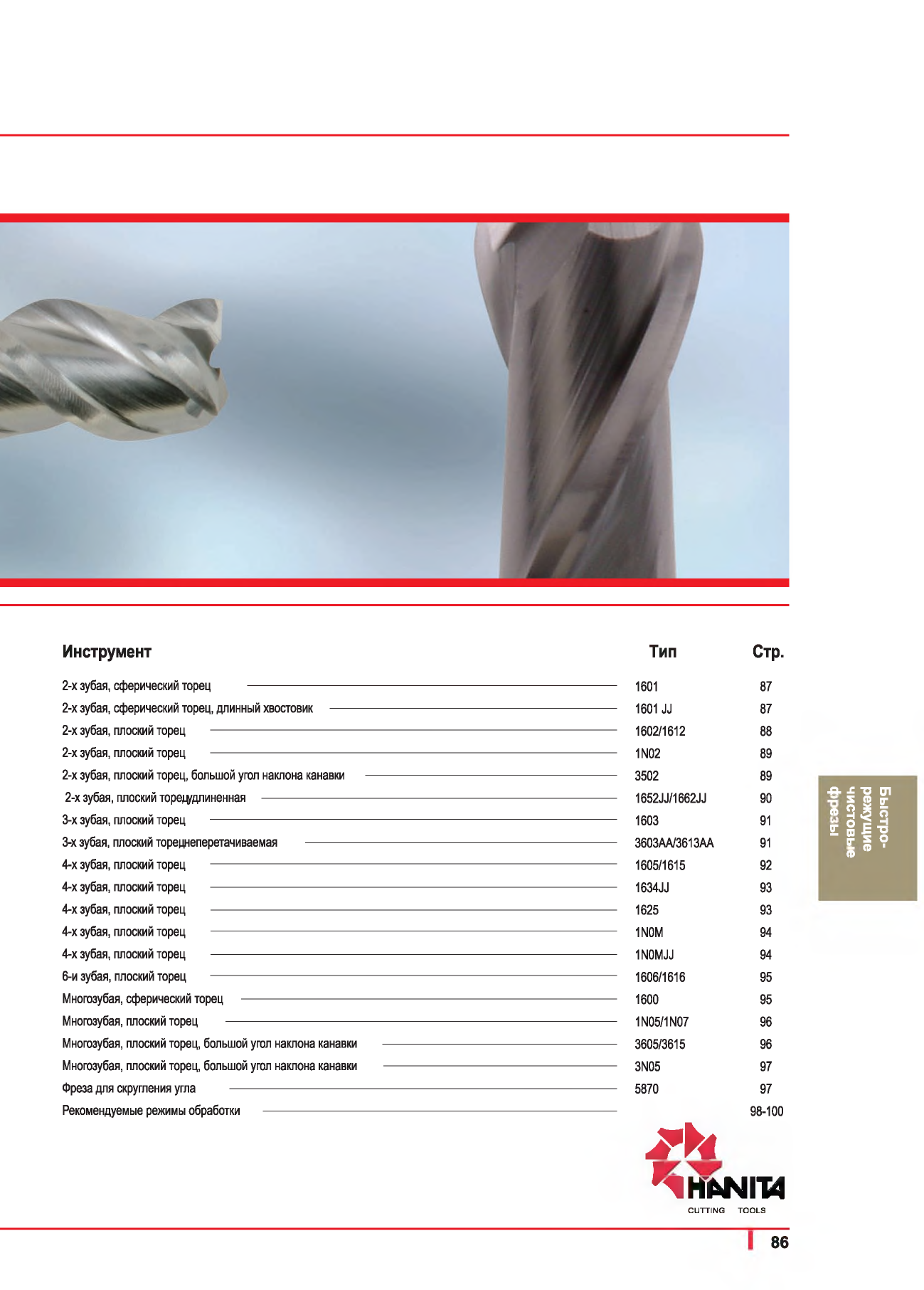 2-х зубая, плоский торец, большой угол наклона канавки