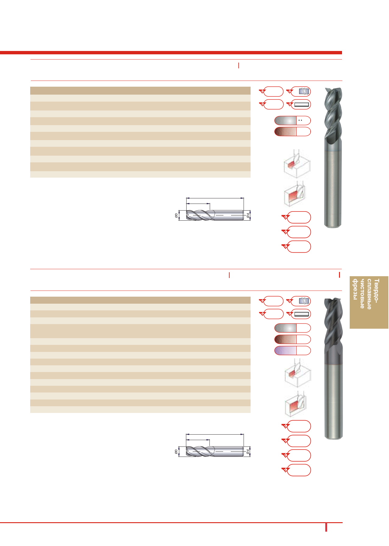 6-ти зубая, плоский торец, большой угол наклона канавки