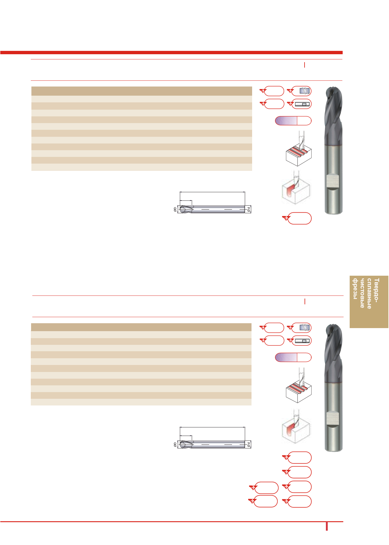 3-х зубая, плоский торец, большой угол наклона канавки, длинный хвостовикДлина резания