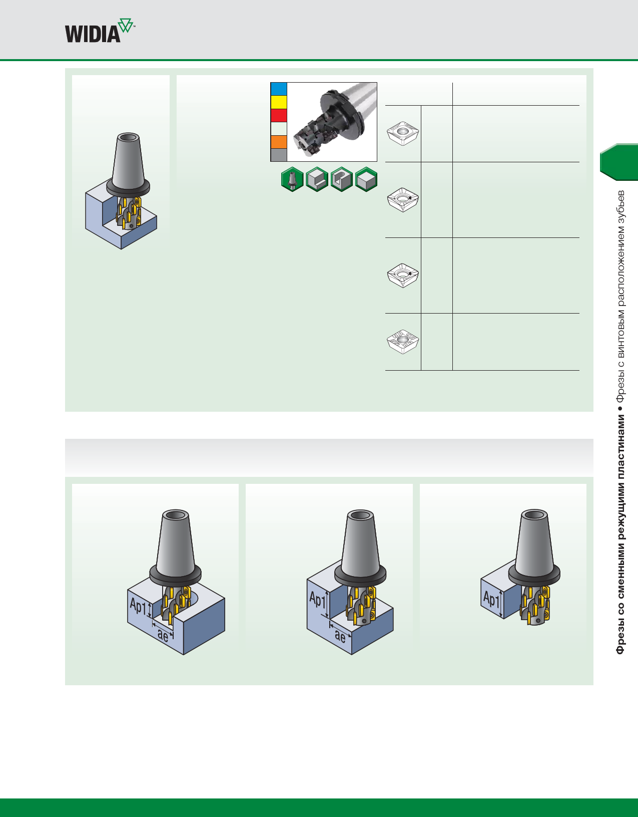 Соотношение глубины резания (Ap1) и ширины контакта (ae) в зависимости от типа операции