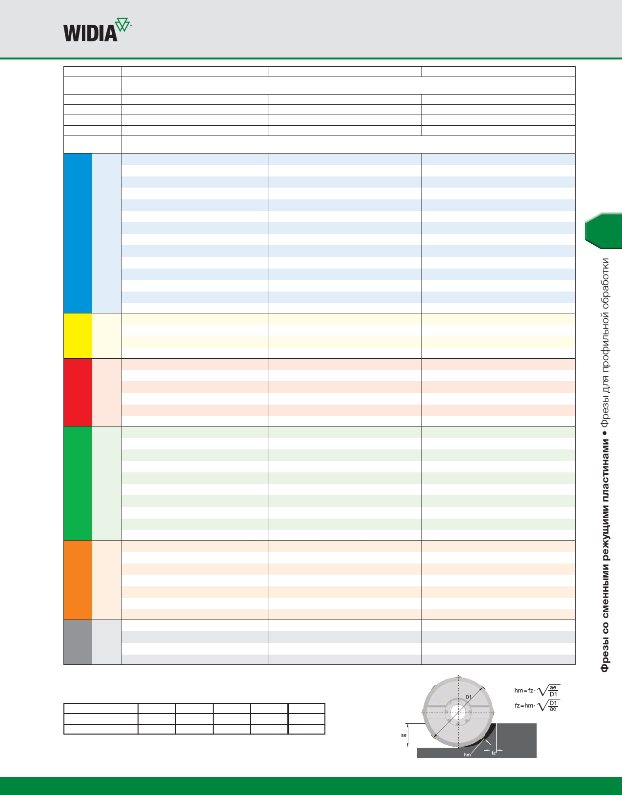 При меньших значениях ae, fz и vc необходимо умножить на коэффициент, указанный ниже: