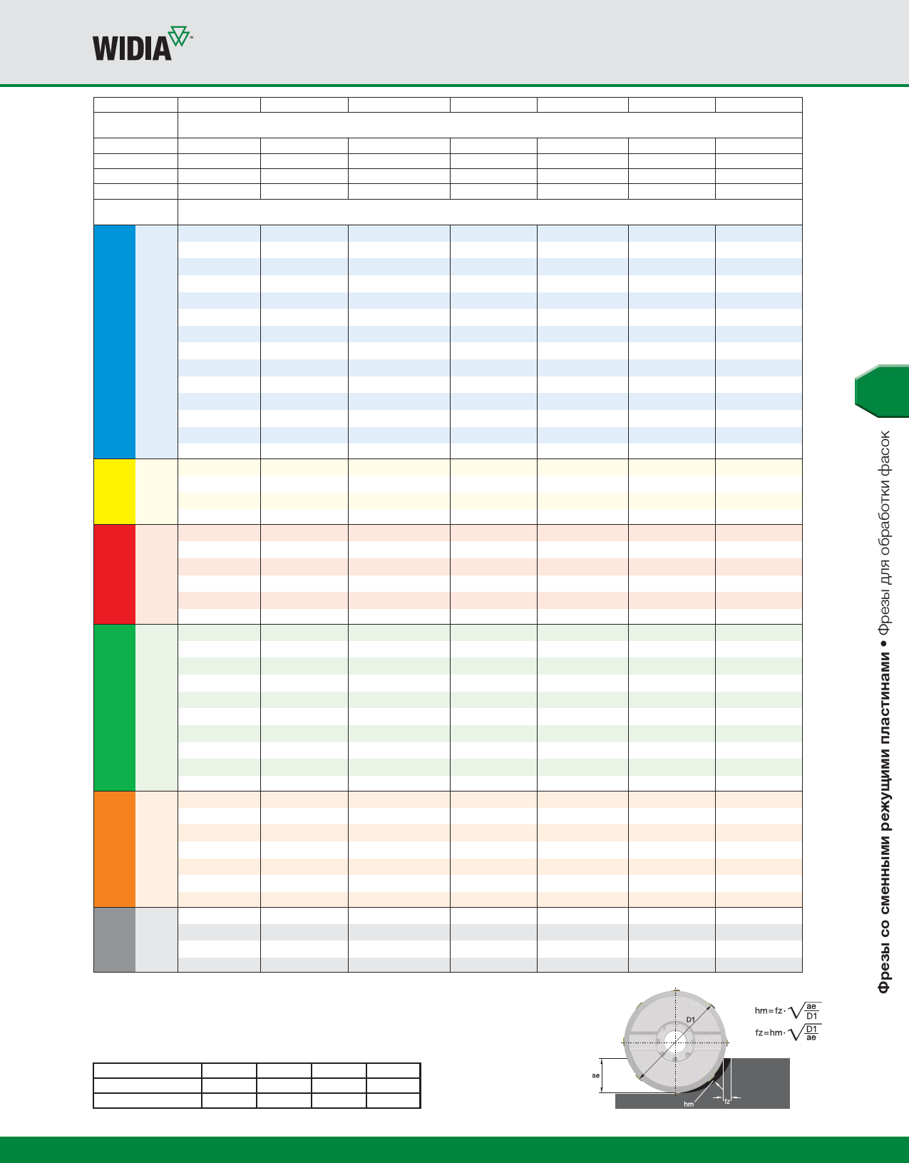 Рекомендуемая начальная подача (fz) указана жирным шрифтом.