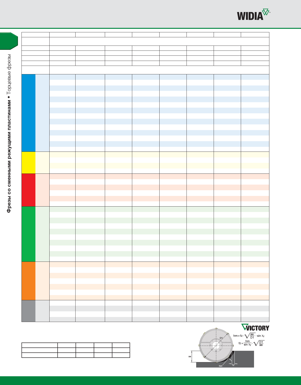 Рекомендуемая начальная подача (fz) указана жирным шрифтом. Используйте соответствующую скорость (vc).