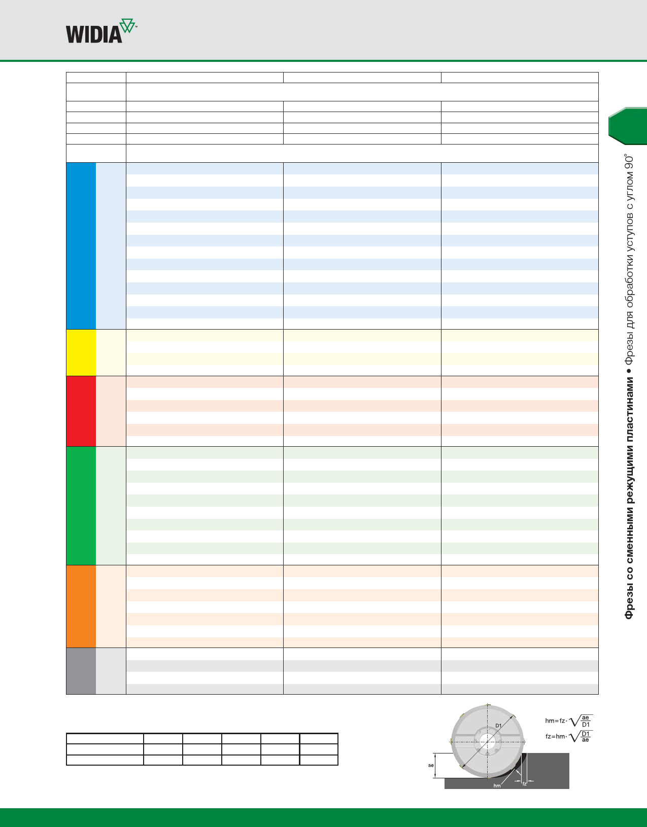 Рекомендуемая начальная подача (fz) указана жирным шрифтом. Используйте соответствующую скорость (vc).