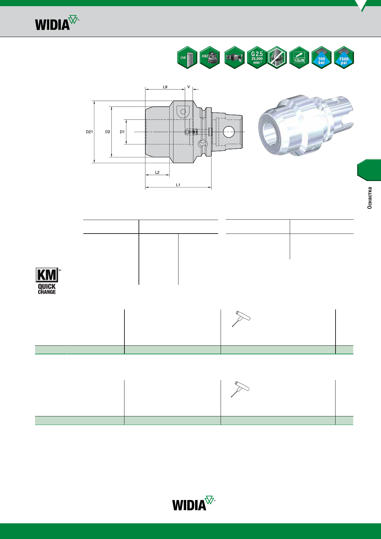 Техническая информация о гидравлических патронах приведена на стр. K60–K63 каталога WIDIA Tooling Systems A-09-02122.