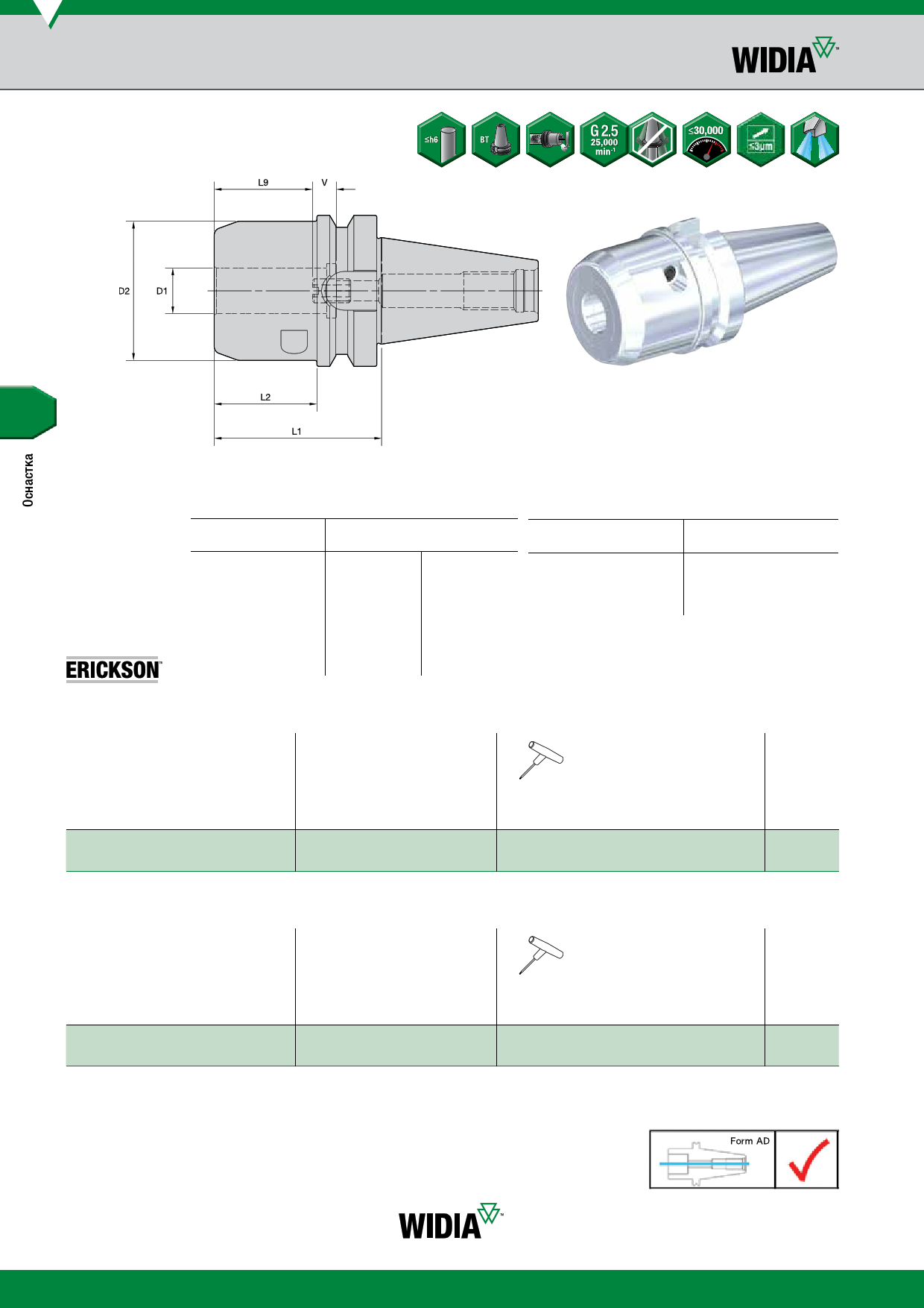 Техническая информация о гидравлических патронах приведена на стр. K60–K63 каталога WIDIA Tooling Systems A-09-02122.