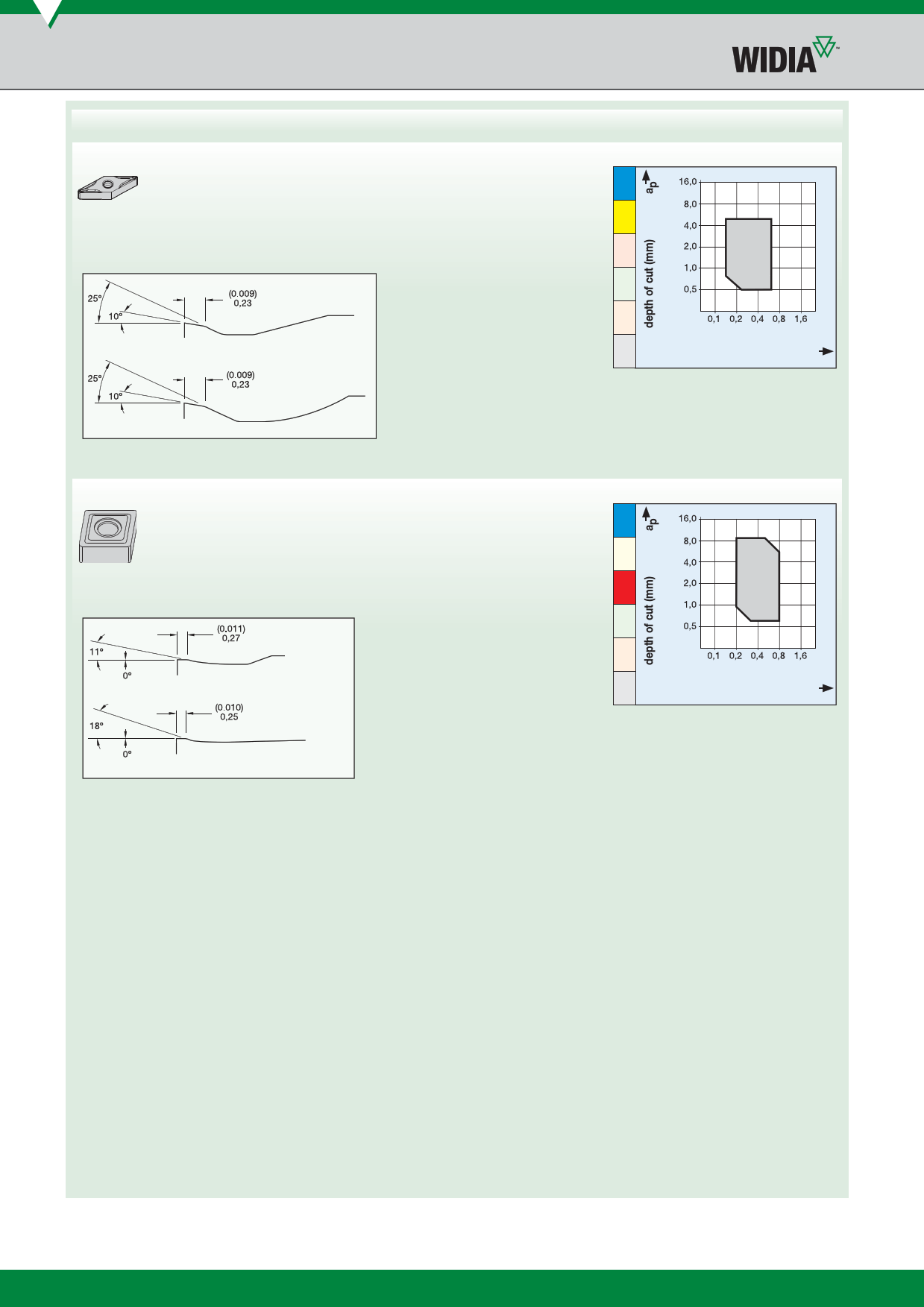 chipbreaker element in corner area. Good chip forming with low depths of cut.