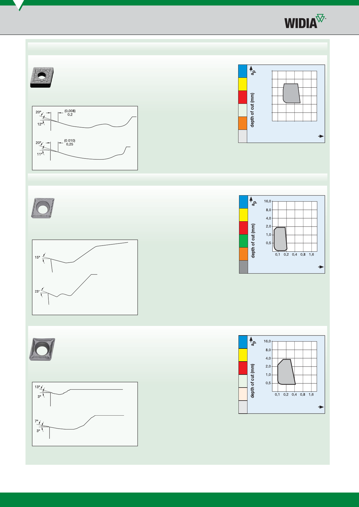 requirements due to positive rake angle. Good chip control over a wide range. Also used
