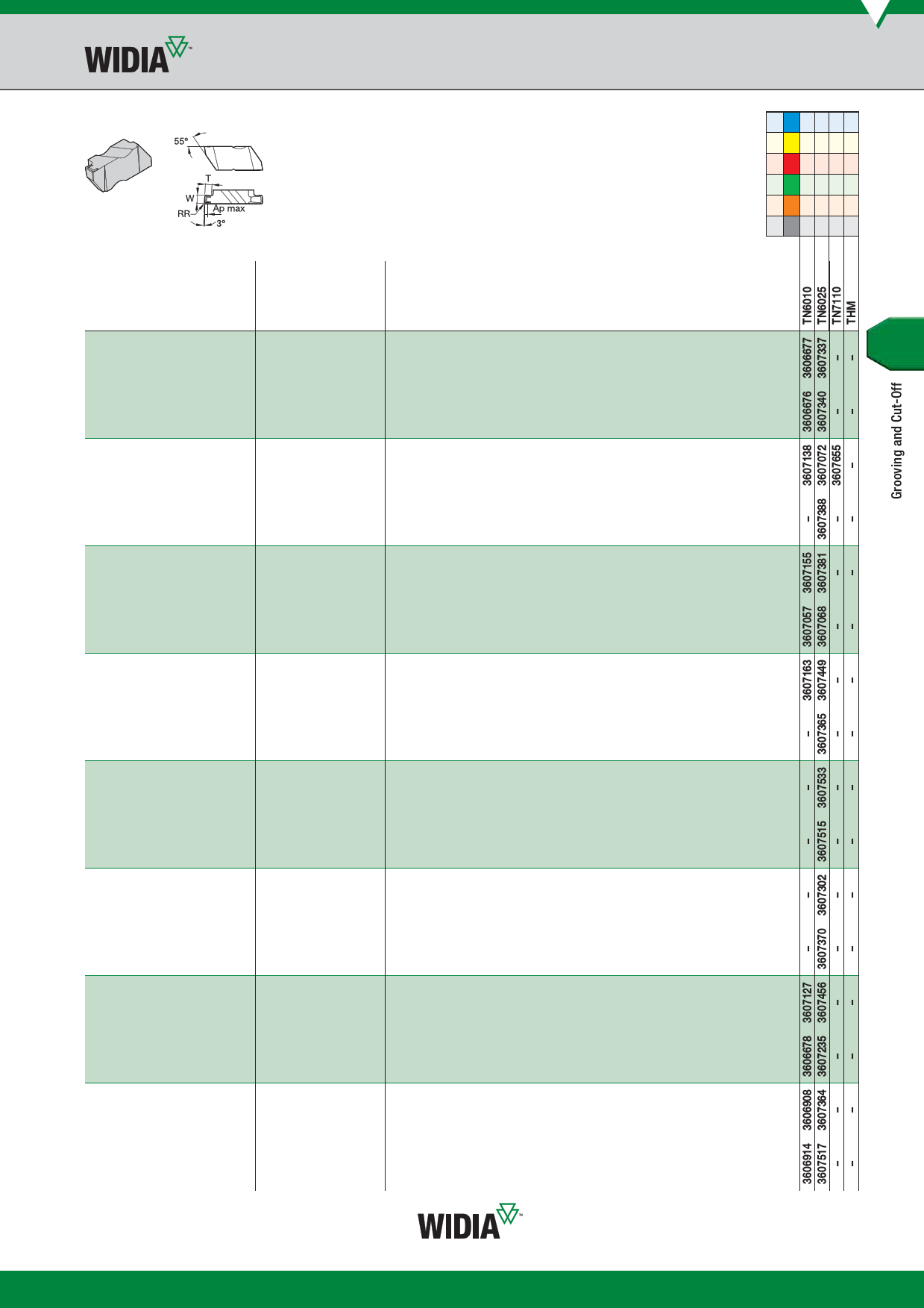 (NG-K • Grooving Inserts with Chip Control — continued)