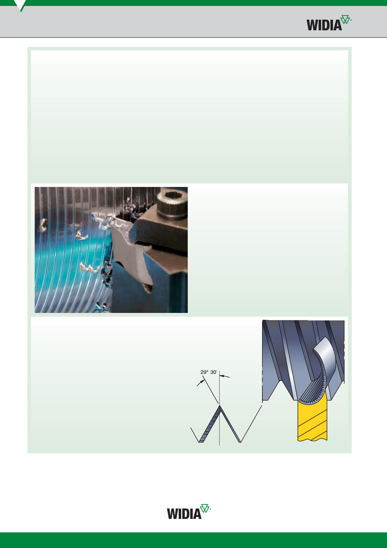 an infeed angle between 28° and 29° 30'. Do not apply chip control inserts